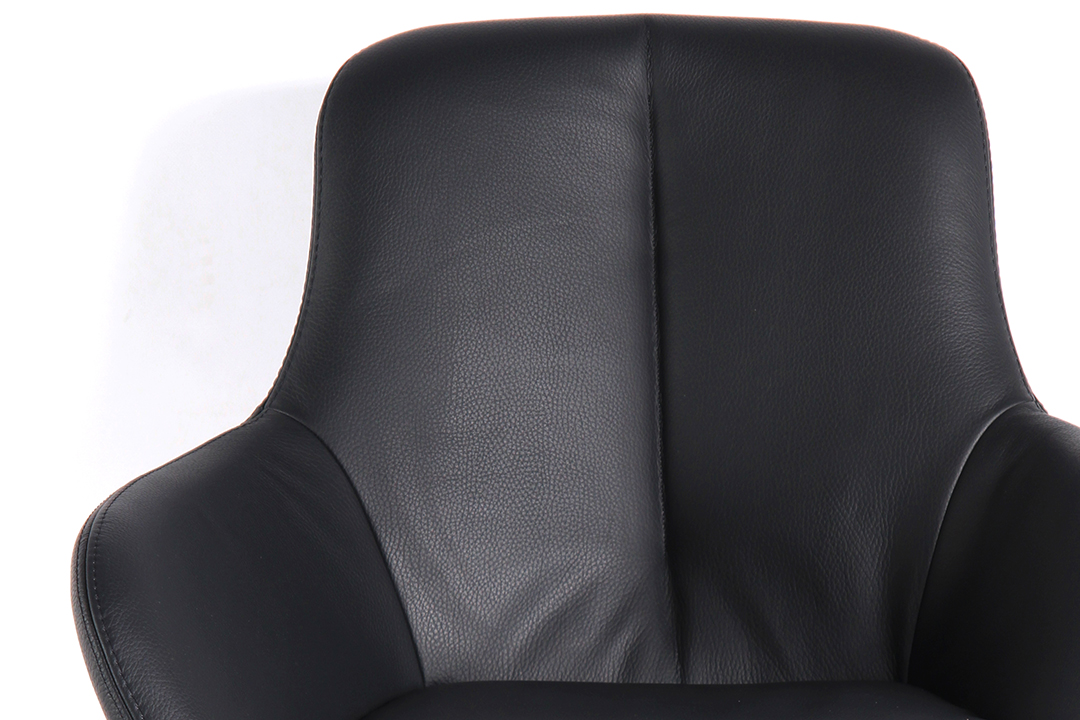 Sitz, Rücken und Armlehnen verfügen über eine dekorative Doppelsteppnaht. Optional ist die Doppelsteppnaht auch mit Kontrastfaden in den Farben Weiß, Hellgrau, Anthrazit oder Schwarz erhältlich. Standardmäßig wird die Nahtfarbe passend zum jeweiligen Bezug gewählt. Bei Bezügen mit unterschiedlichen Farben arbeiten wir mit zwei farblich abgestimmten Fäden.