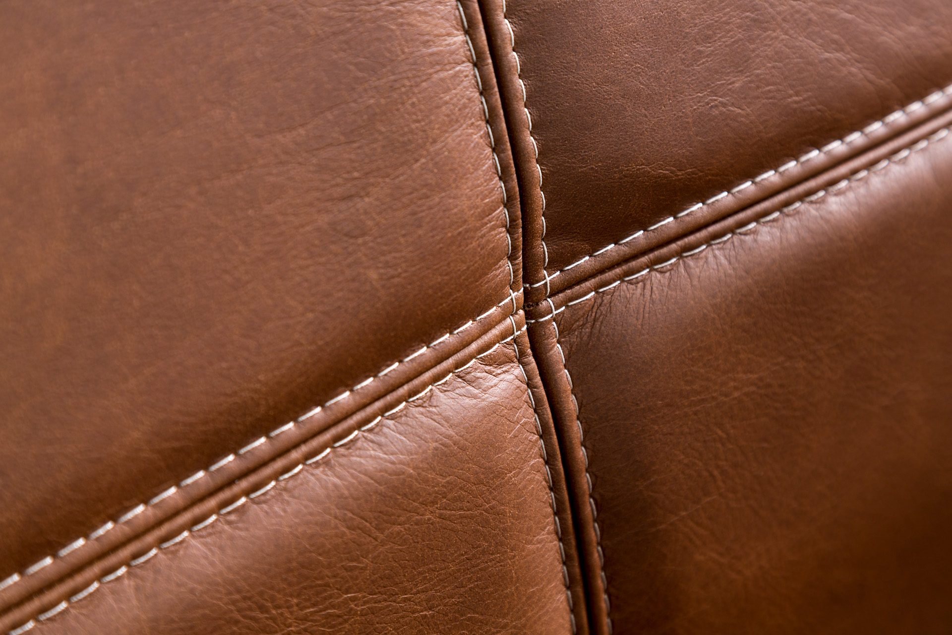 Sitz, Rücken und Armlehnen verfügen über eine moderne Kreuznaht. Optional gibt es die Kreuznaht auch mit Kontrastfaden in den Farben weiß, hellgrau anthrazit oder schwarz. Auf Wunsch kann HENRI auch ohne Ziernaht gefertigt werden.
