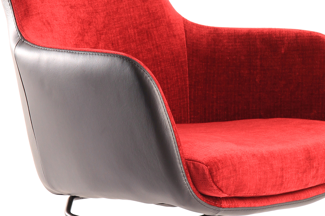 Die Sitzschale lässt sich außen und innen unterschiedliche beziehen. Auch eine Kombination aus Leder und Stoff ist möglich. Dadurch ergeben sich einzigartige Kombinationsmöglichkeiten!