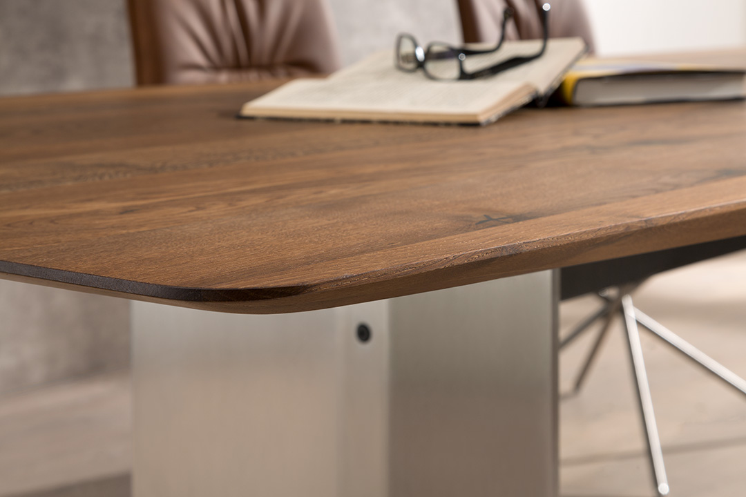 Die komplex hergestellten Kantenprofile machen den Tisch FREIFORM einzigartig. Zur Wahl stehen drei verschiedene Kantenformen: Die Facettenkante sowie die Kantenprofile PF1 und PF2.