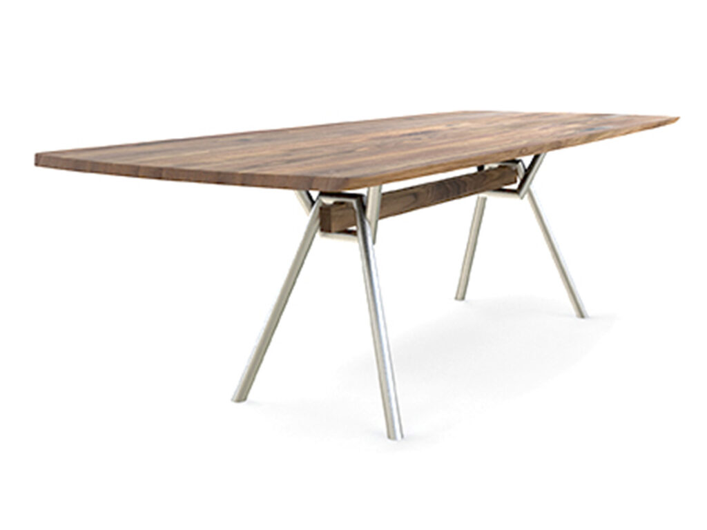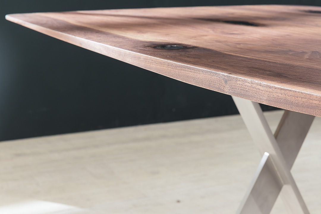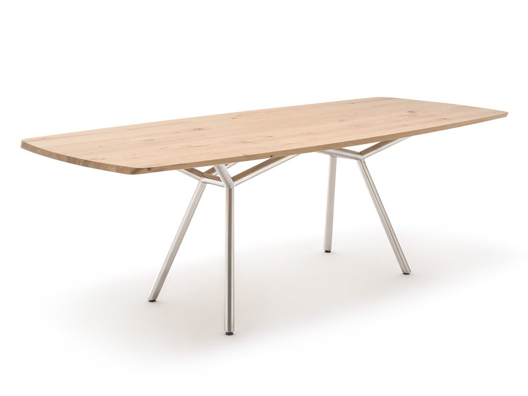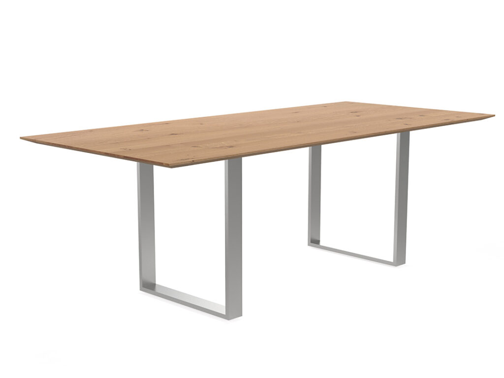 Jeder Tisch kann ganz individuell gefertigt werden: Neben einer bootsförmigen und rechteckigen Tischplatte stehen sieben Gestellformen zur Wahl.
