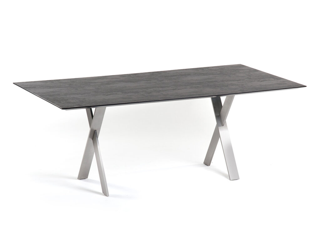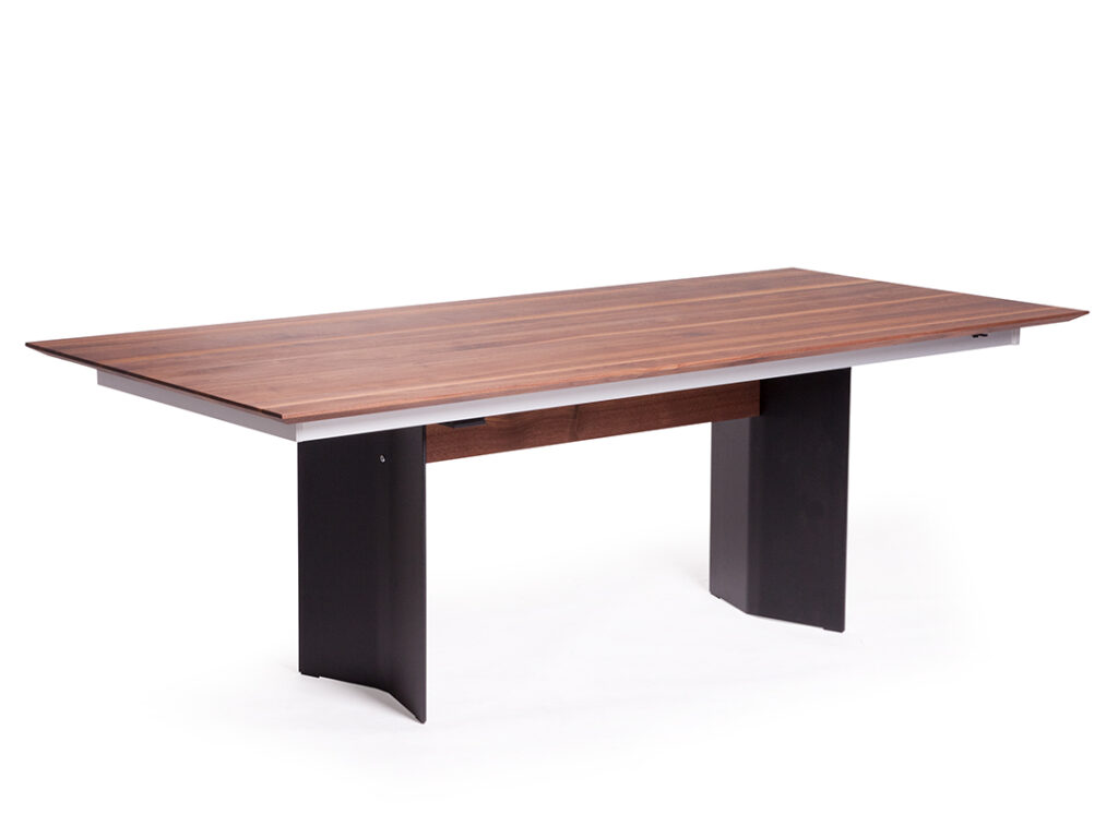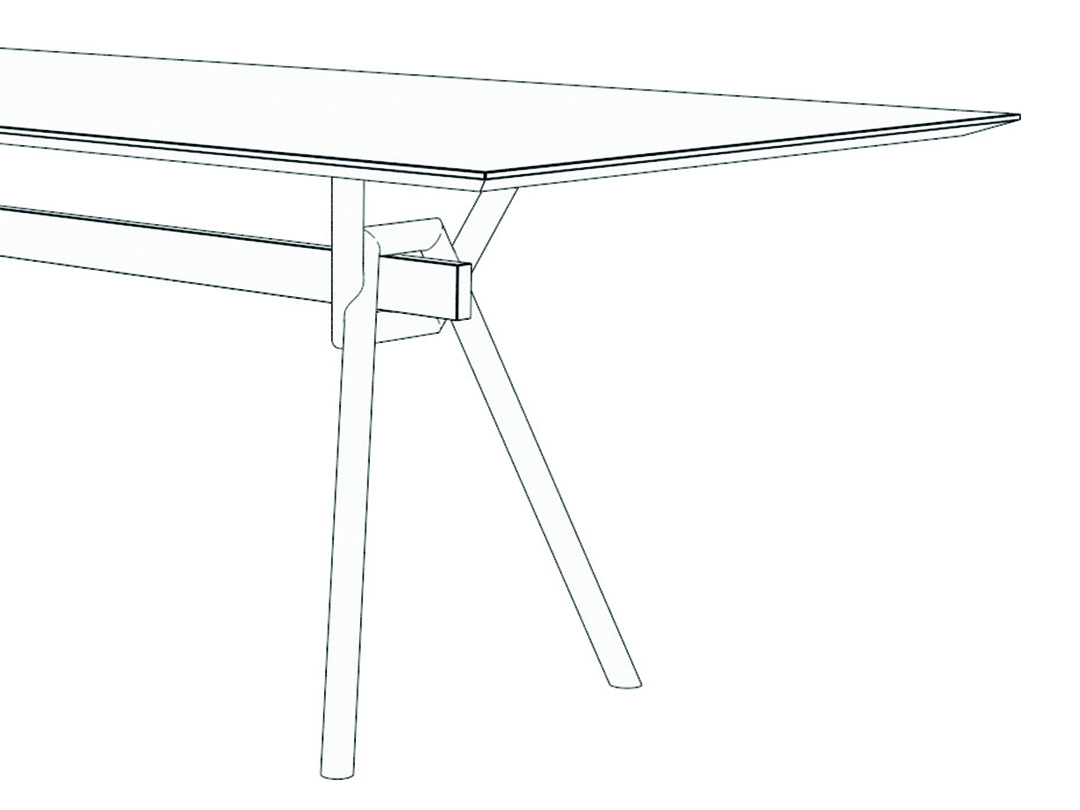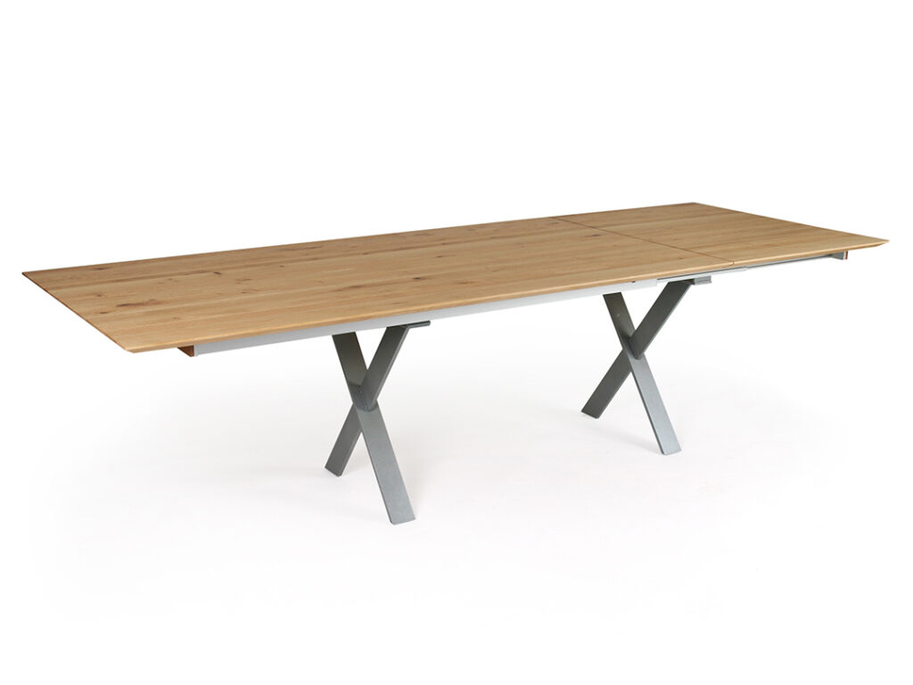 Jeder Tisch kann ganz individuell gefertigt werden: Neben einer bootsförmigen und rechteckigen Tischplatte stehen sieben Gestellformen zur Wahl.