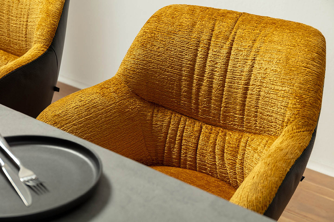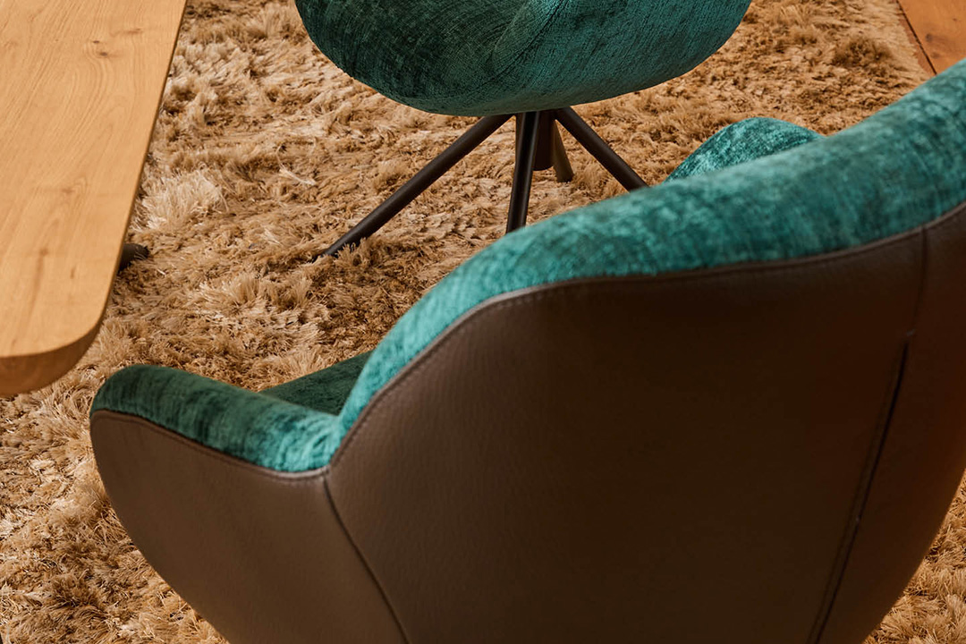 Optional ist ALASSIO mit patentierter Moover-Funktion für aktives Sitzen und entspanntes Zurücklehnen sowie mit 360°-Drehfunktion erhältlich – ideal für stilvolle Wohn- und Essbereiche mit Anspruch an Design und Funktion.