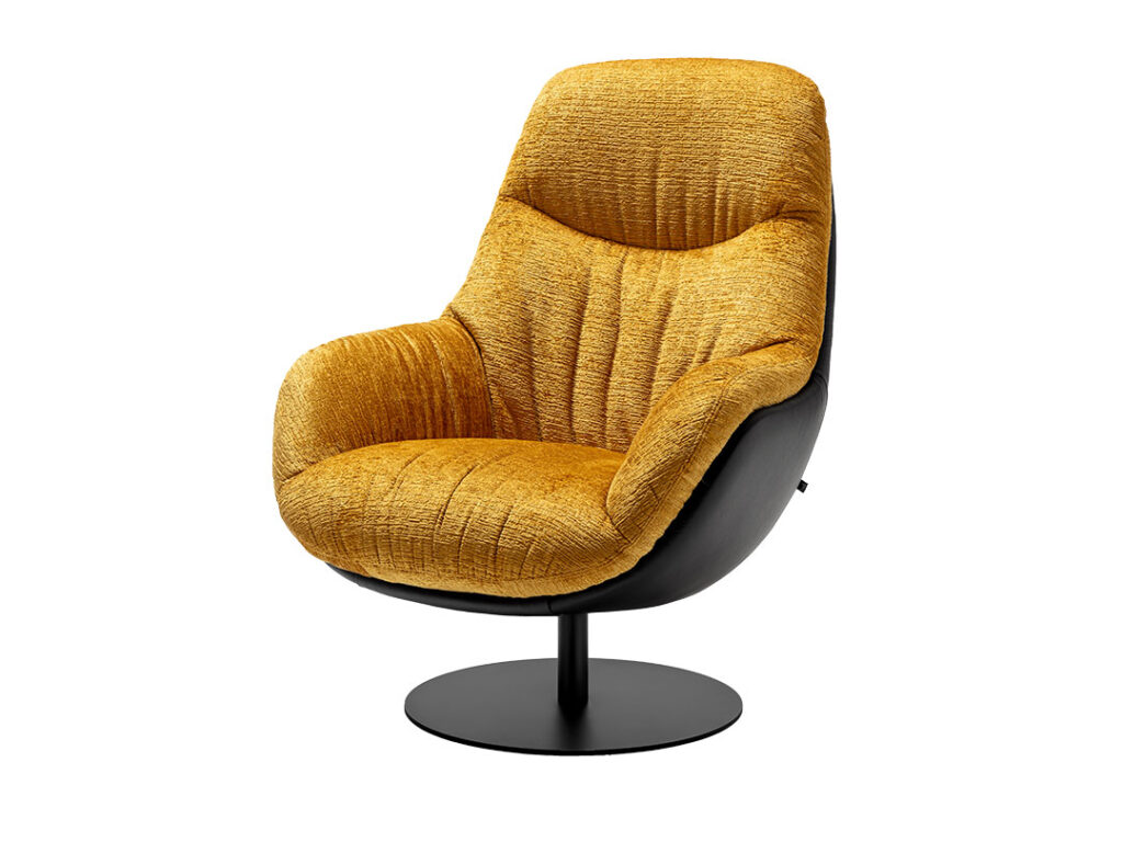 Die Innenseite der Rückenlehne ist leger in Falten gelegt und verleiht dem Sessel eine entspannte, wohnliche Note.