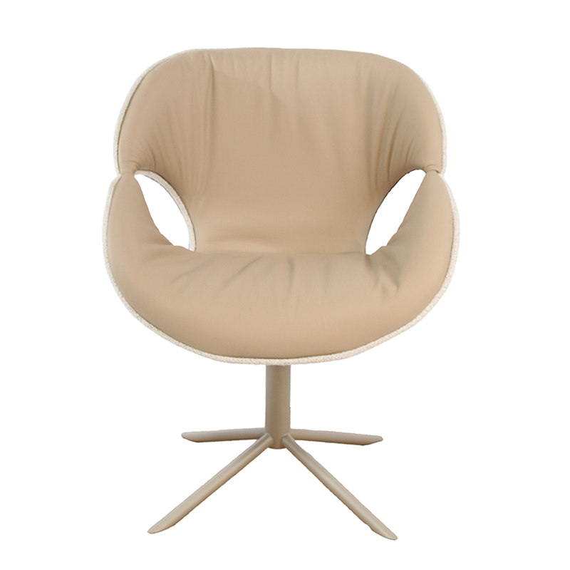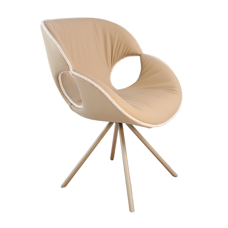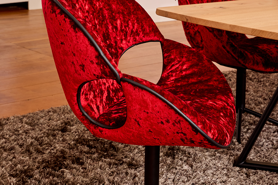 FLORA vereint verspieltes Design mit außergewöhnlichem Komfort. Rückenlehne, Armlehnen und Sitzfläche verschmelzen zu einer harmonischen, rund geschwungenen Form, deren filigrane Armlehnen mit dekorativem Loch an die Anmut einer Blume erinnern. Die Kedernaht unterstreicht die hochwertige Verarbeitung und íst ein zusätzlicher Blickfang.
