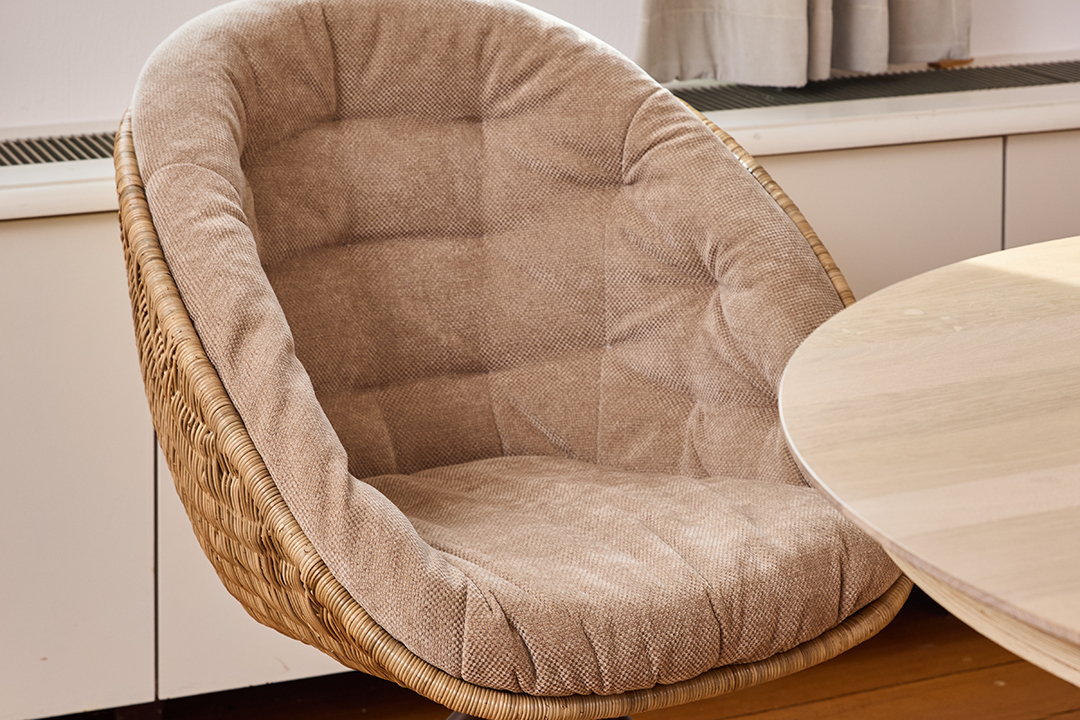 Mit seinem Zusammenspiel aus charaktervollem Geflecht und textilem Innenleben setzt NIDO stilvolle Akzente – modern, natürlich und ausgesprochen gemütlich.