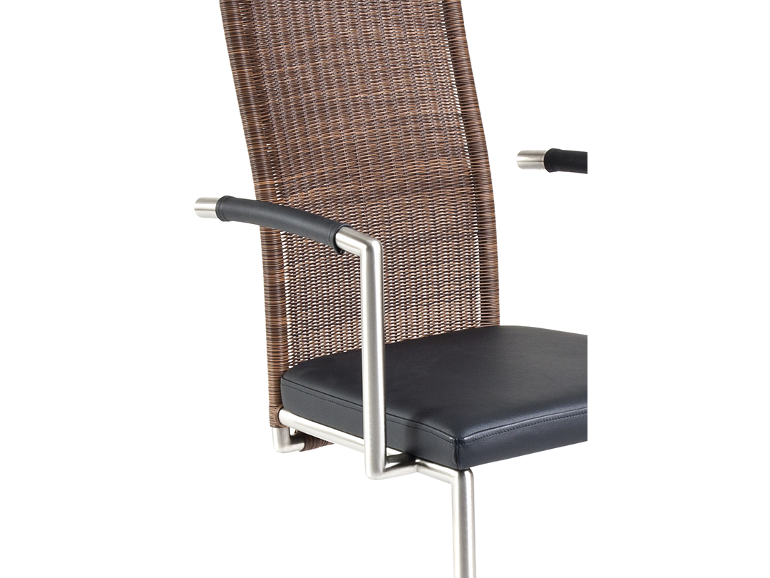 SALENO ist ein echter Kombistuhl: Die Rückenlehne aus feinem Geflecht trifft auf einen gepolsterten Sitz in Leder oder Stoff. Diese Kombination aus Struktur und Komfort verleiht dem Stuhl eine besondere Optik und Haptik – modern, hochwertig und vielseitig.
