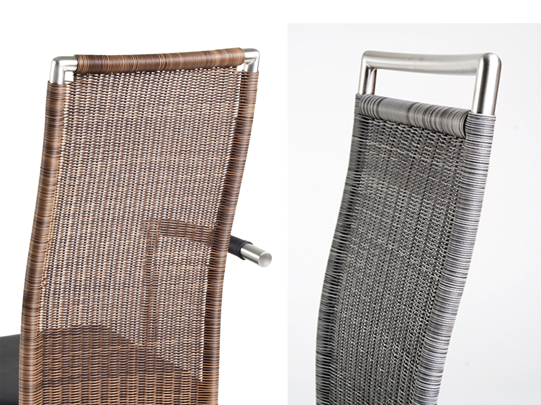 Auch im Rückengeflecht zeigen sich die Details: Wähle zwischen einem integrierten Handgriff für mehr Funktionalität oder handgearbeiteten Edelstahlecken.