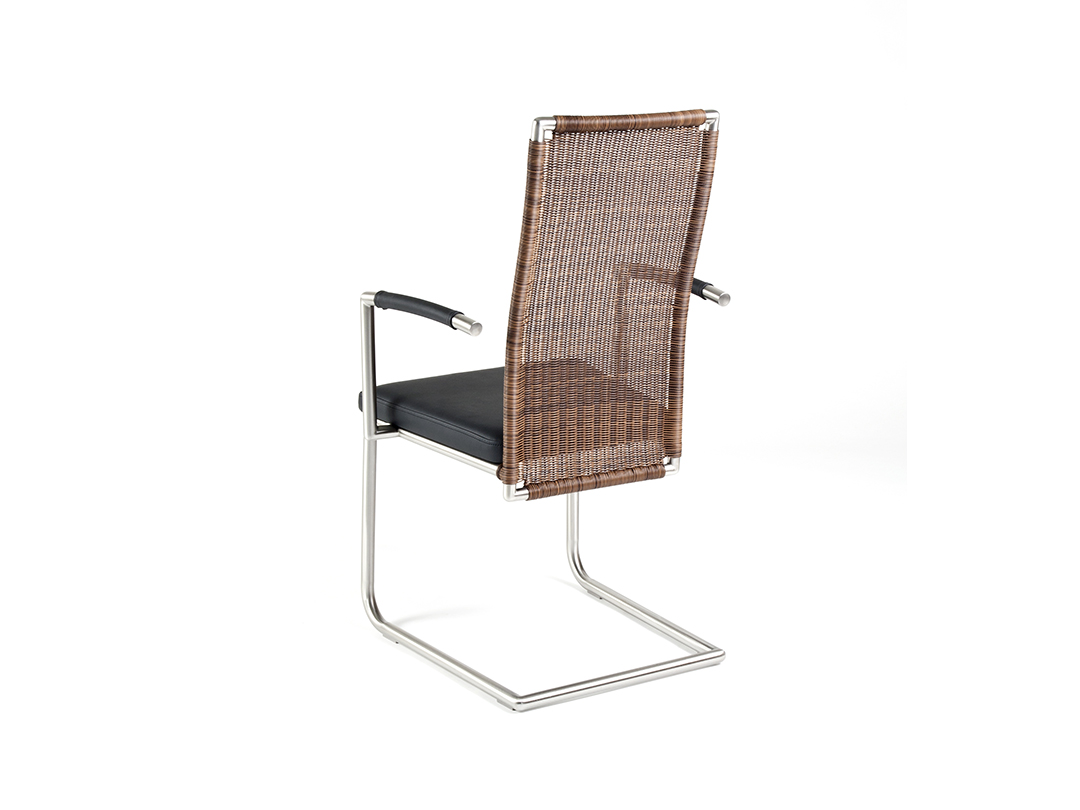 SALENO ist ein echter Kombistuhl: Die Rückenlehne aus feinem Geflecht trifft auf einen gepolsterten Sitz in Leder oder Stoff. Diese Kombination aus Struktur und Komfort verleiht dem Stuhl eine besondere Optik und Haptik – modern, hochwertig und vielseitig.
